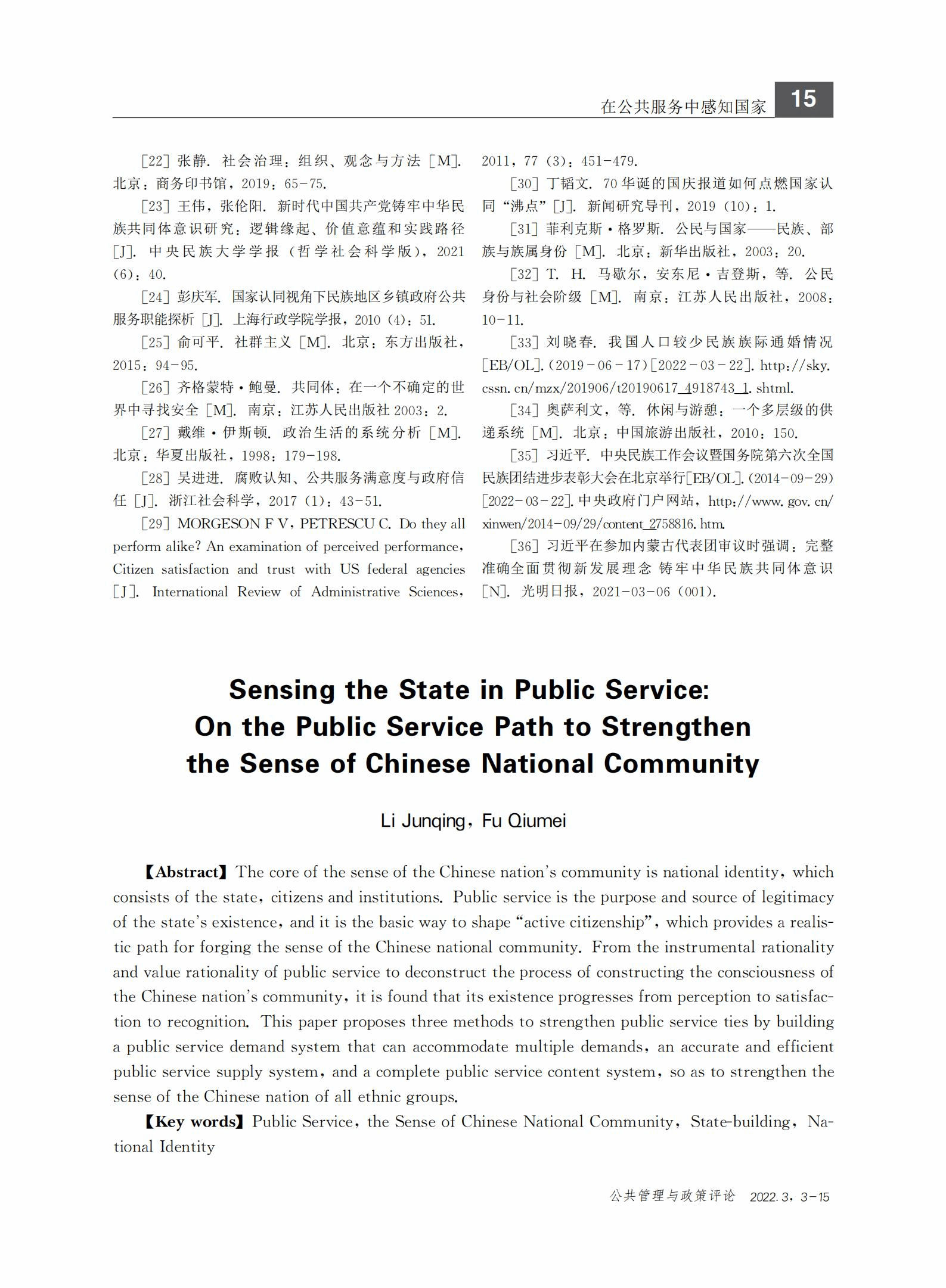 李俊清,付秋梅:在公共服务中感知国家--论铸牢中华民族共同体意识的公共服务路径
