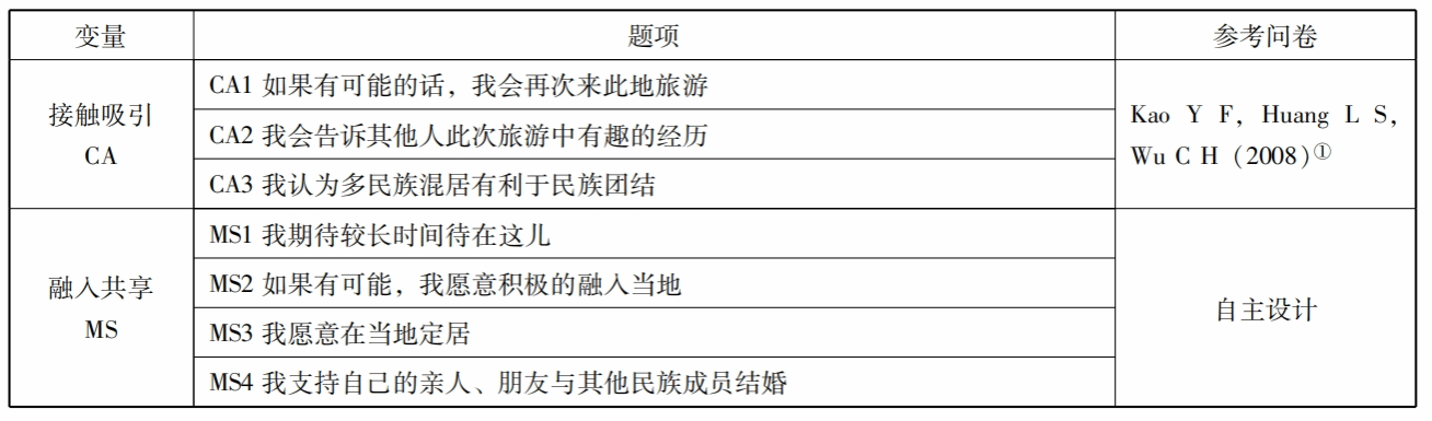 设计合适的问卷以便更好反映实际情况,对相关变量的测量主要借鉴已有问卷,并结合旅游促进各民族“三交”的实际情况做出适当的修改和调整。对问题的测量主要使用李克特7级量表,从1-7分别表示从“非常不认同”到“非常认同”的各层级(见表1)。