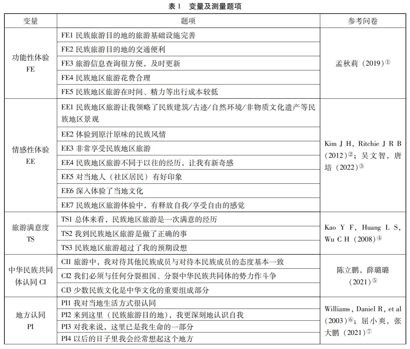 旅游体验是旅游学科中的基础性概念,其由Boorstin(1964)首先提出,主要注重和追求旅游活动中的真实性探寻,后逐步扩展到其核心概念、要素、形态、构建过程等一系列探求。旅游的本质就是一种体验,旅游体验作为游客在旅游活动中的重要感受,研究者们关注于旅游体验本身及其构成机理。旅游体验是一种享受的状态,根本目的在于满足一系列心理需求。旅游体验价值是旅游者在旅游过程中感知到的总体利益,旅游体验被构建为享乐主义、恢复精力、当地文化、意义、知识、参与和新颖性等方面内容。在过程视角下,旅游体验涉及情感构建、功能建构等方面;旅游作为服务业的主要内容,旅游体验和服务过程紧密相关,其中关键是游客情感体验;在旅游过程中,可进入性、经济性等功能性因素也是游客旅游体验的重要考量因素,功能价值是旅游体验的基石。因此,本文认为,游客在民族地区旅游中的旅游体验主要是基于情感体验和功能体验两方面,情感体验涉及民族地区旅游中感受到的新奇、自由、异质性等情感反应;功能体验涉及可进入性、经济性等感受。