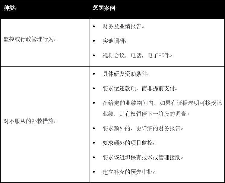 表4:不合规研究机构的行政管理行为和补救措施范例