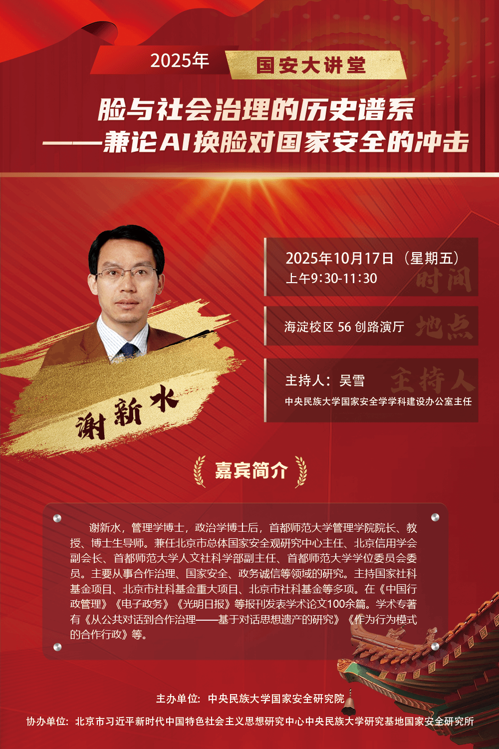 讲座预告 | 谢新水教授——以新著解析脸与社会治理演进,警惕 AI 换脸国家安全冲击